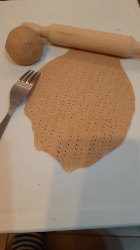 How to make Homemade Matzo – (Time it- within 18 minutes from start to finish!) Ingredients; 3 Cups of flour. 1 and a quarter, or half cups of water. (salt to sprinkle- optional) Put oven on high (500 F or 260 C) Method; Sift flour into a Bowl, Add water and mix and knead well until the dough is soft. (can add more water or flour if necessary) Break up dough into round balls. Flatten the balls and use a rolling pin to roll the dough as thin as possible. (Roll it on baking paper – otherwise its too hard to transfer.) Place it on baking paper or in a foil tray. Prick it all over with a fork ( to take away the air bubbles) Can sprinkle with salt. (optional.) Bake in hot oven for 7-10 min. Can serve with soup, put your favorite topping on or even make matzo pizza! Enjoy